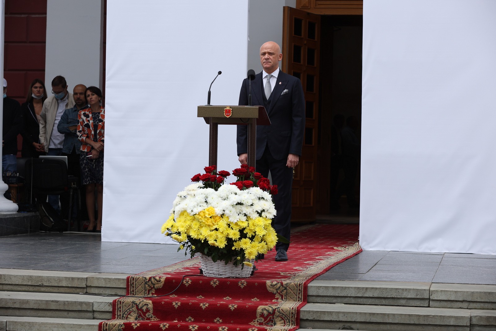 Всіх одеситів і учасників урочистої церемонії привітав Одеський міський голова Геннадій Труханов. «Сьогодні нашому місту виповнилося 227 років. Час йде, міняються покоління, Одеса розвивається і стає все більш привабливою. Незмінними залишаються наші принципи - взаємоповага, толерантність, гостинність і бажання жити в мирі. Але ми міняємо простір навколо себе. Про це свідчать соціальні та інфраструктурні проекти - від сімейних амбулаторій до нової злітно-посадкової смуги. Щодня ми бачимо результат копіткої роботи. І це - наші спільні здобутки. Щиро вітаю всіх зі святом, бажаю миру і благополуччя кожної одеської сім'ї! » - сказав мер Одеси.